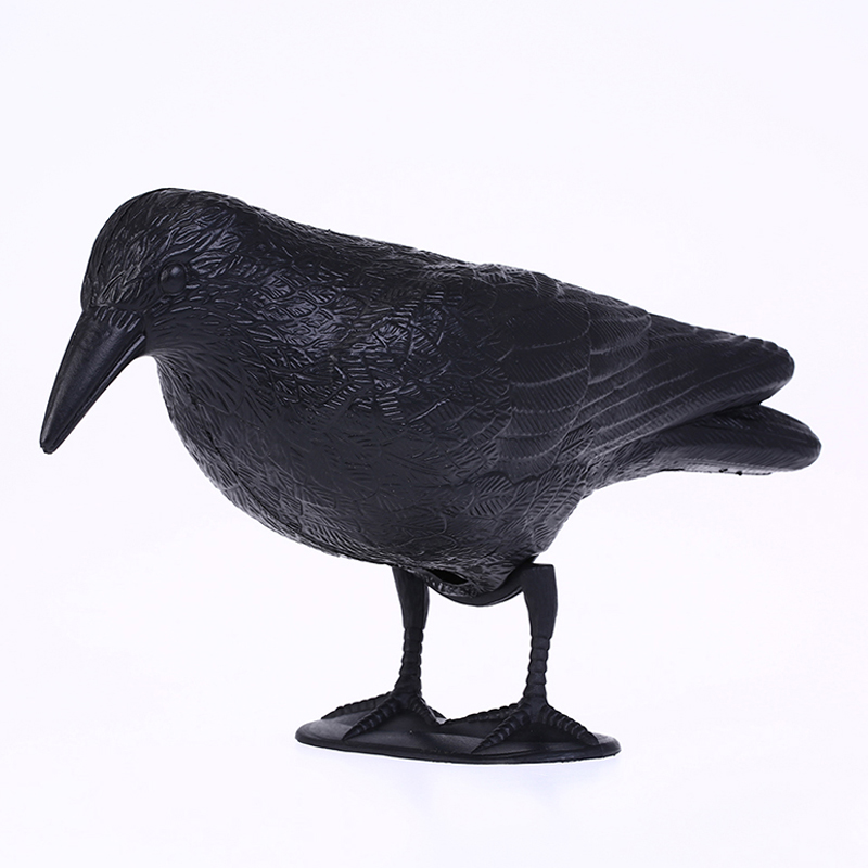 - Kan hænge på træet eller stå på jorden. Hang på hovedet for at skræmme krager og ravne. Hæng det højre side op for at skræmme andre fugle som duer.